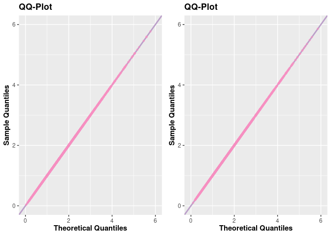 Notice that the results were very close in a graphical analysis. However, the execution time specifying a convenient base density was lower for a very large sample.