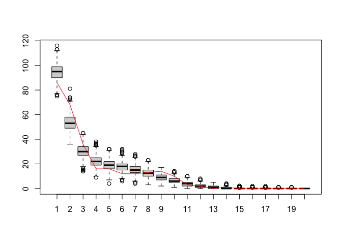 myGofTieWeight <- monanGOF(ans = myResDN, gofFunction = getTieWeights, lvls = 1:20)