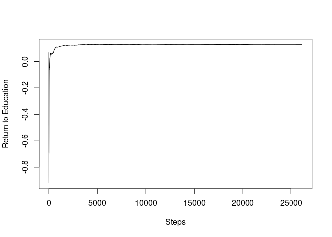 mincer_sgd = sgdi_lm(y ~ edu + exp + exp2)