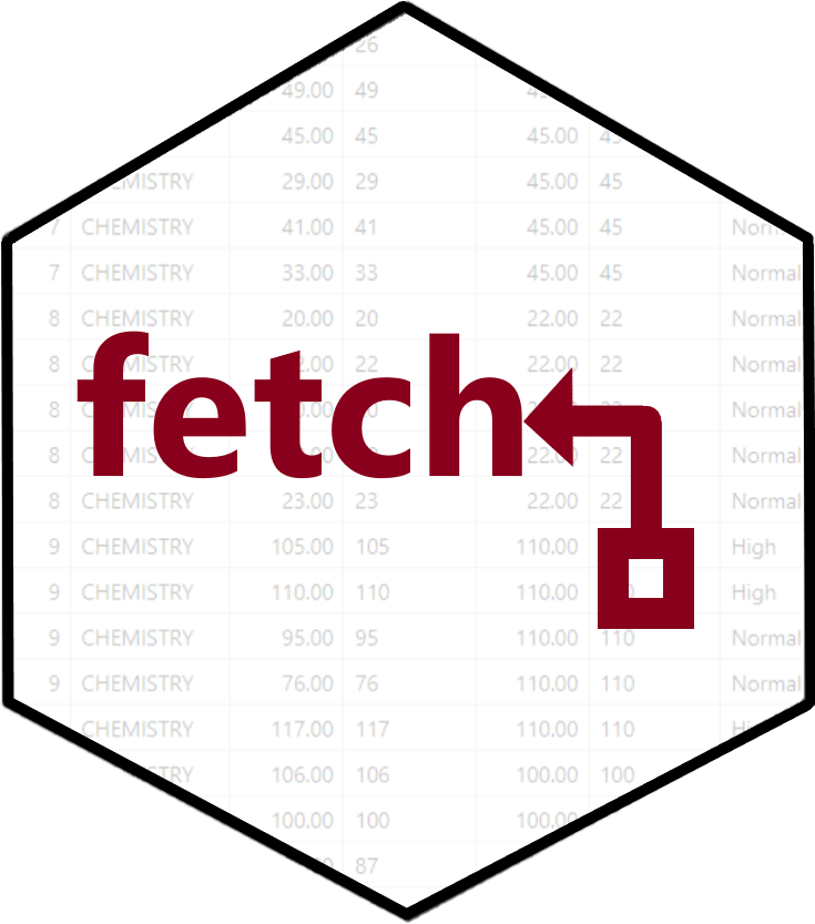 Many R programs require multiple input datasets. The purpose of the fetch package is to make it easier to access multiple datasets from an R program. The package allows you to load a catalog of all the datasets in a directory, and then load each desired dataset as needed into your program. The method minimizes the memory used for the data.