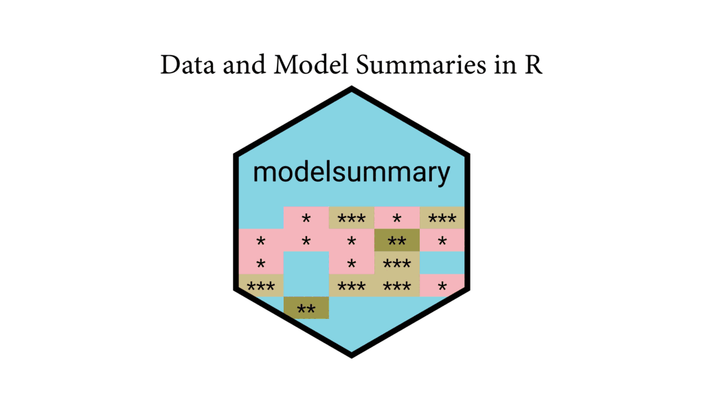 modelsummary is a package to summarize data and statistical models in R. It supports over one hundred types of models out-of-the-box, and allows users to report the results of those models side-by-side in a table, or in coefficient plots. It makes it easy to execute common tasks such as computing robust standard errors, adding significance stars, and manipulating coefficient and model labels. Beyond model summaries, the package also includes a suite of tools to produce highly flexible data summary tables, such as dataset overviews, correlation matrices, (multi-level) cross-tabulations, and balance tables (also known as “Table 1”). The appearance of the tables produced by modelsummary can be customized using external packages such as kableExtra, gt, flextable, or huxtable; the plots can be customized using ggplot2. Tables can be exported to many output formats, including HTML, LaTeX, Text/Markdown, Microsoft Word, Powerpoint, Excel, RTF, PDF, and image files. Tables and plots can be embedded seamlessly in rmarkdown, knitr, or Sweave dynamic documents. The modelsummary package is designed to be simple, robust, modular, and extensible (Arel-Bundock, 2022).