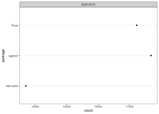 If you pass a vector of package names for a single day, plot() returns a dotchart: