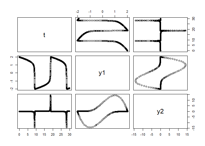 y1 <- 2; y2 <- 0; mu <- 10; tmax <- mu * 3; dt <- 0.01