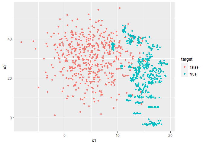 majority = data.frame(x1 = rnorm(500, 5, 4),