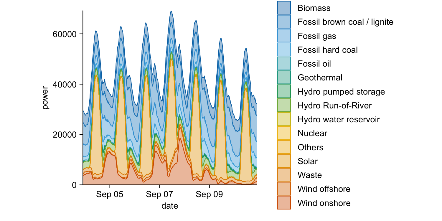 tidyplot(x = date, y = power, color = energy_source) |>